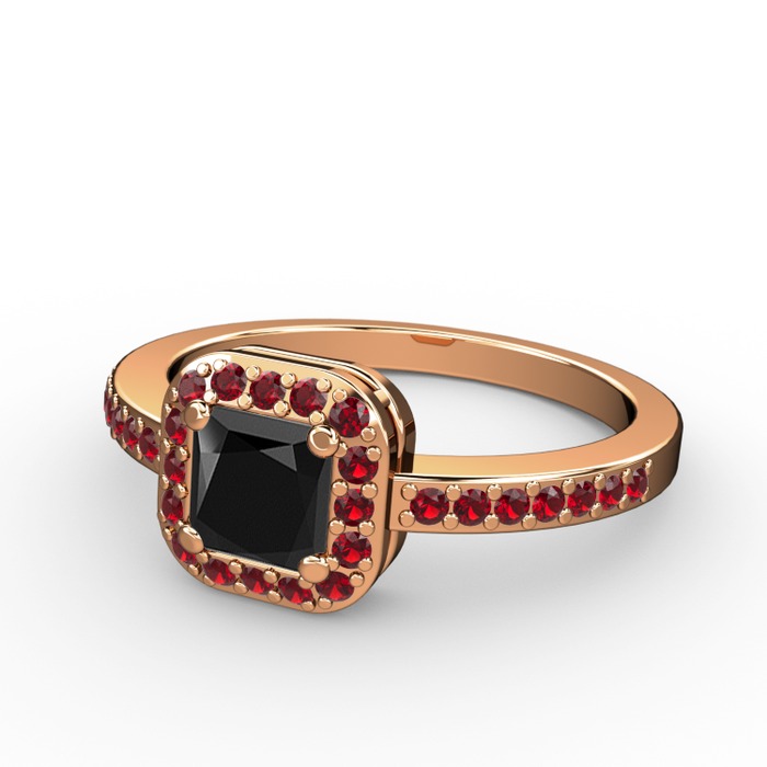 Siyah zirkon ve garnet 14 ayar rose altın yüzük