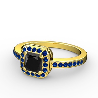 Siyah zirkon ve lab safir 18 ayar altın yüzük