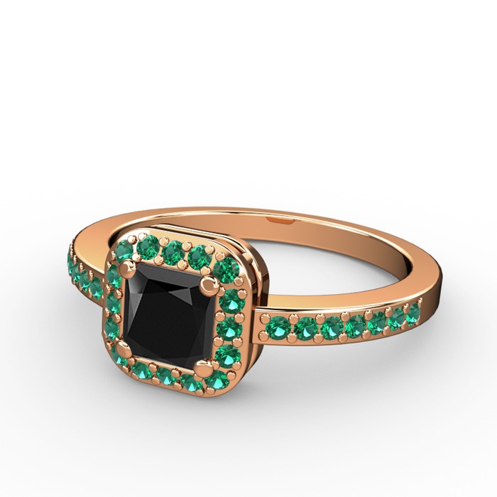 Siyah zirkon ve yeşil kuvars 925 ayar rose altın kaplama gümüş yüzük
