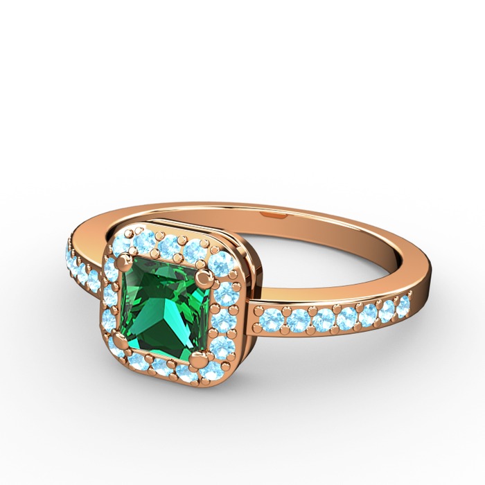 Yeşil kuvars ve akuamarin 18 ayar rose altın yüzük