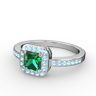 Yeşil kuvars ve akuamarin 8 ayar beyaz altın yüzük