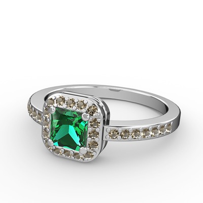Yeşil kuvars ve dumanlı kuvars 8 ayar beyaz altın yüzük