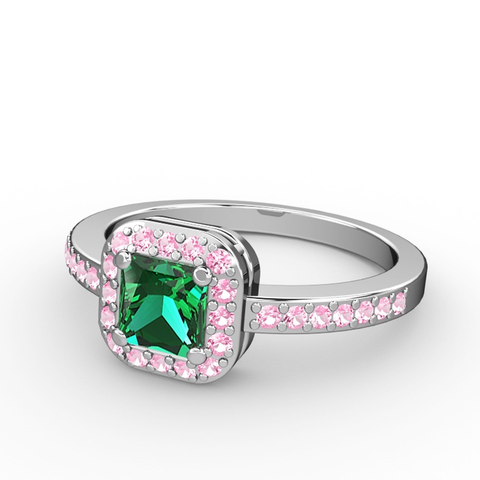 Yeşil kuvars ve pembe kuvars 14 ayar beyaz altın yüzük