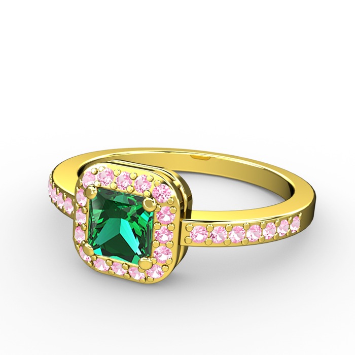 Yeşil kuvars ve pembe kuvars 925 ayar altın kaplama gümüş yüzük