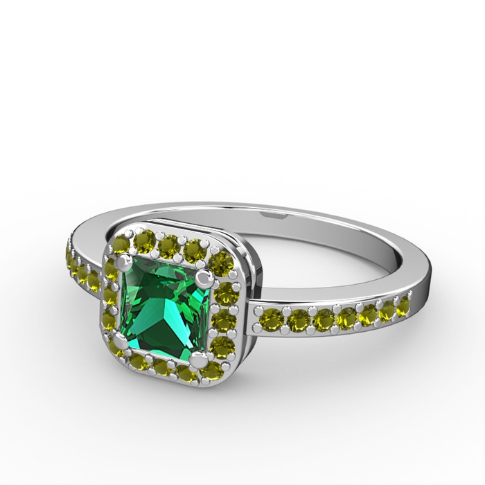 Yeşil kuvars ve peridot 14 ayar beyaz altın yüzük