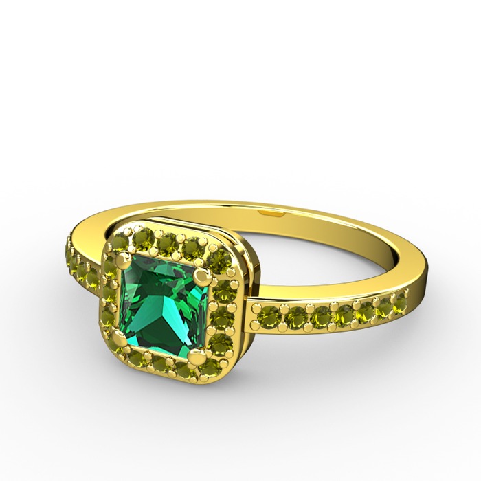 Yeşil kuvars ve peridot 925 ayar altın kaplama gümüş yüzük
