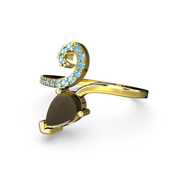 Akuamarin ve dumanlı kuvars 925 ayar altın kaplama gümüş yüzük