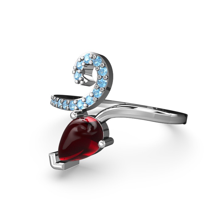 Akuamarin ve garnet 8 ayar beyaz altın yüzük
