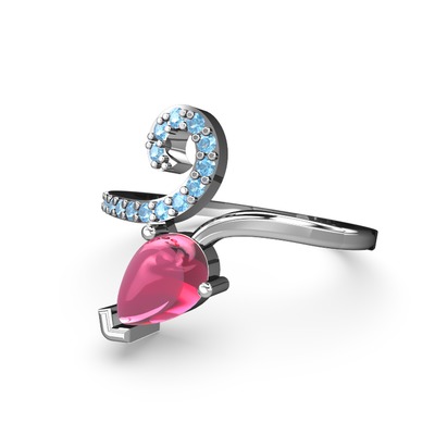 Akuamarin ve pembe kuvars 14 ayar beyaz altın yüzük