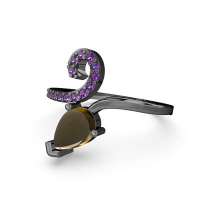 Ametist ve dumanlı kuvars 925 ayar siyah rodyum kaplama gümüş yüzük