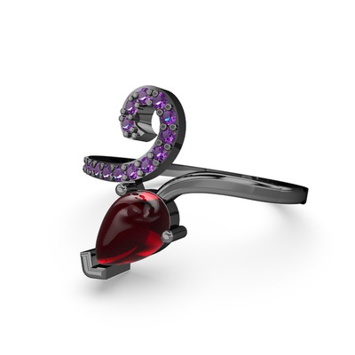 Ametist ve garnet 925 ayar siyah rodyum kaplama gümüş yüzük