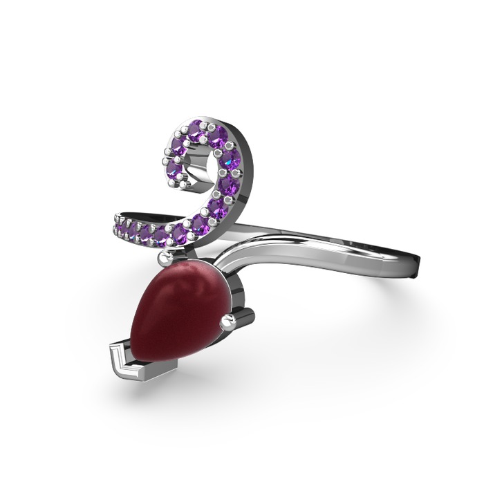 Ametist ve kök yakut 8 ayar beyaz altın yüzük