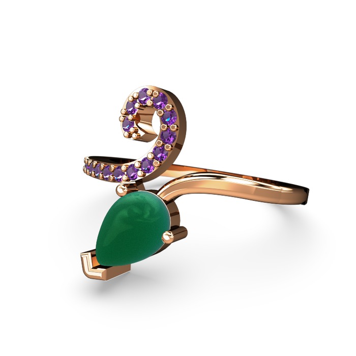 Ametist ve kök zümrüt 8 ayar rose altın yüzük