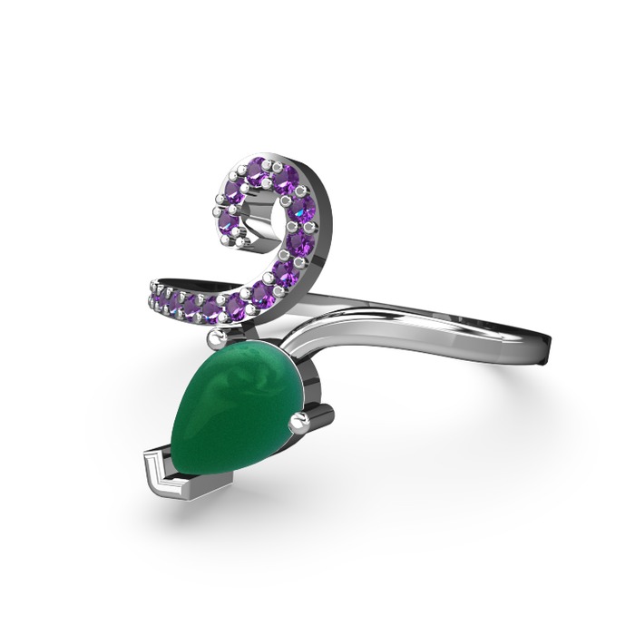 Ametist ve kök zümrüt 925 ayar gümüş yüzük