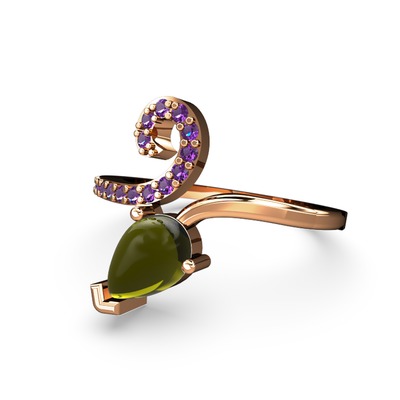 Ametist ve peridot 14 ayar rose altın yüzük