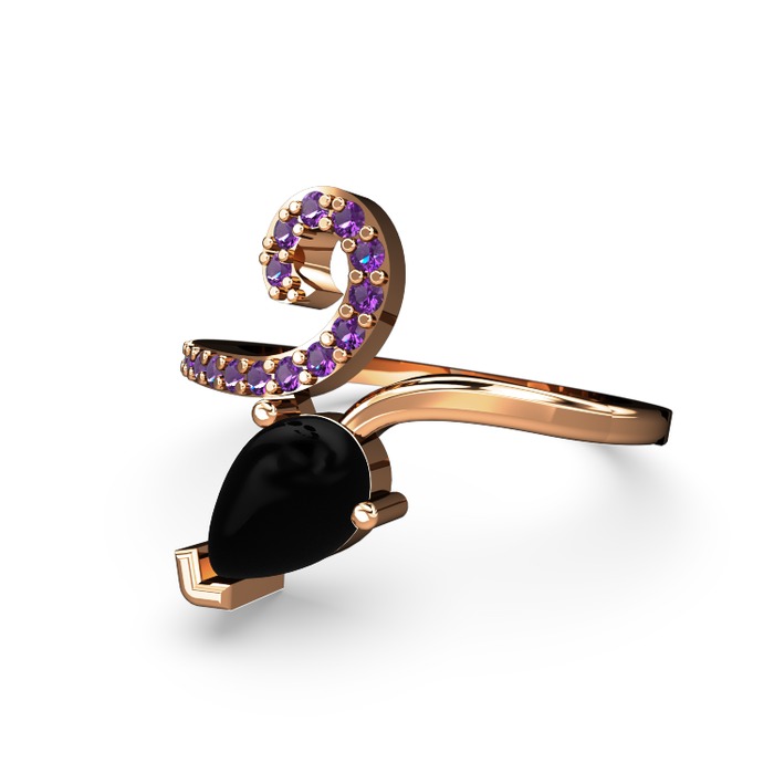 Ametist ve siyah zirkon 8 ayar rose altın yüzük