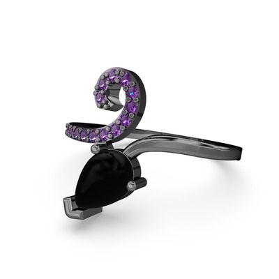 Ametist ve siyah zirkon 925 ayar siyah rodyum kaplama gümüş yüzük