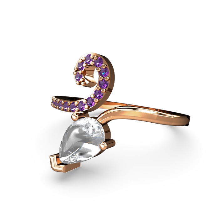Ametist ve swarovski 925 ayar rose altın kaplama gümüş yüzük