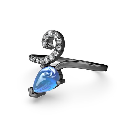 Beyaz zirkon ve akuamarin 925 ayar siyah rodyum kaplama gümüş yüzük