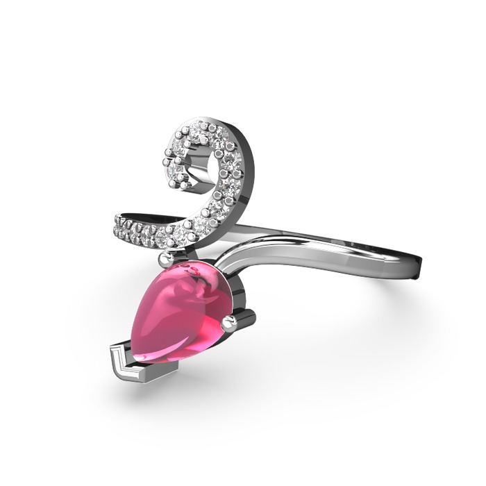 Beyaz zirkon ve pembe kuvars 8 ayar beyaz altın yüzük
