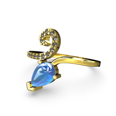 Dumanlı kuvars ve akuamarin 8 ayar altın yüzük
