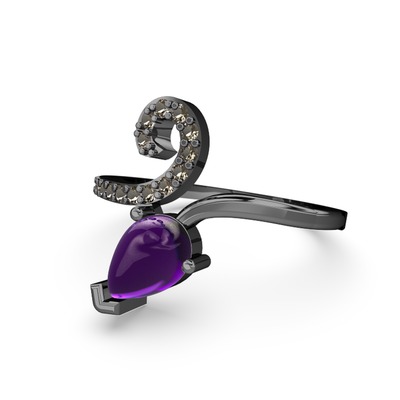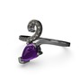 Dumanlı kuvars ve ametist 925 ayar siyah rodyum kaplama gümüş yüzük