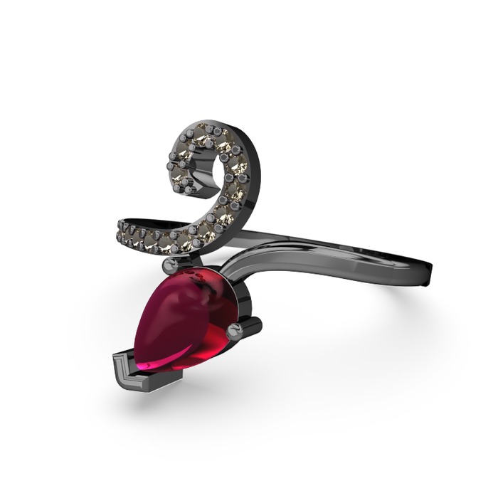 Dumanlı kuvars ve rodolit garnet 925 ayar siyah rodyum kaplama gümüş yüzük
