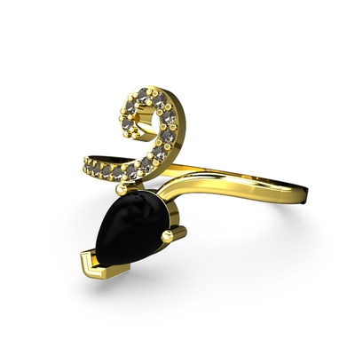 Dumanlı kuvars ve siyah zirkon 925 ayar altın kaplama gümüş yüzük
