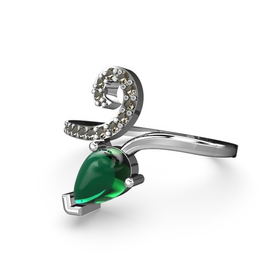 Dumanlı kuvars ve yeşil kuvars 18 ayar beyaz altın yüzük