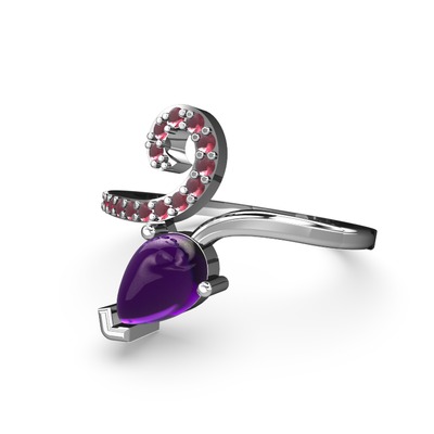 Kök yakut ve ametist 14 ayar beyaz altın yüzük