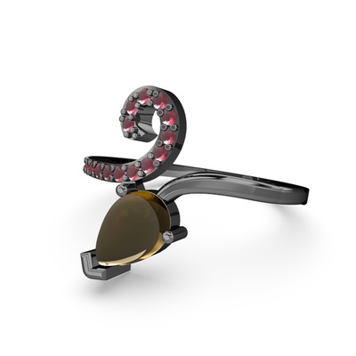 Kök yakut ve dumanlı kuvars 925 ayar siyah rodyum kaplama gümüş yüzük