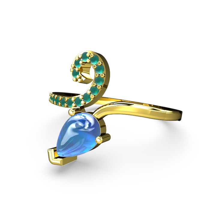 Kök zümrüt ve akuamarin 925 ayar altın kaplama gümüş yüzük