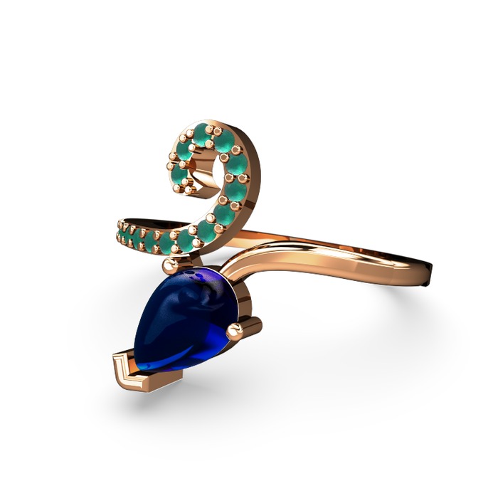 Kök zümrüt ve lab safir 14 ayar rose altın yüzük