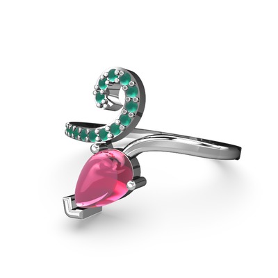 Kök zümrüt ve pembe kuvars 14 ayar beyaz altın yüzük