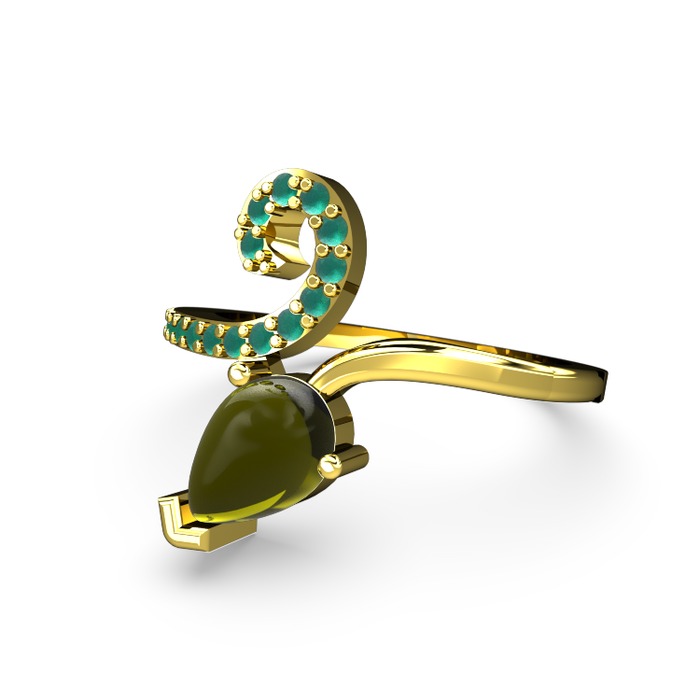 Kök zümrüt ve peridot 14 ayar altın yüzük