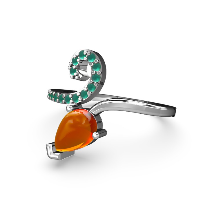 Kök zümrüt ve sitrin 18 ayar beyaz altın yüzük