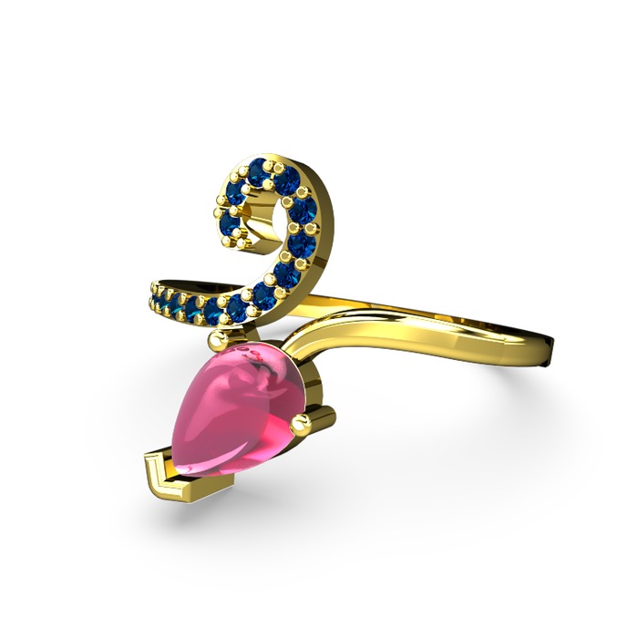 Lab safir ve pembe kuvars 14 ayar altın yüzük