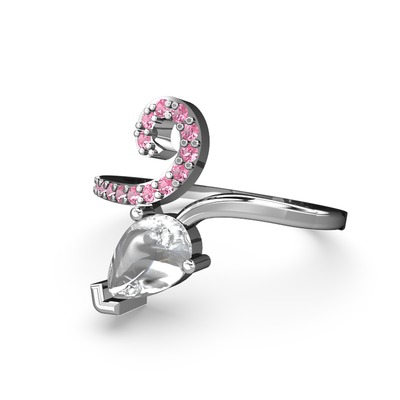 Pembe kuvars ve beyaz zirkon 8 ayar beyaz altın yüzük