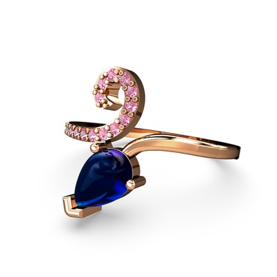 Pembe kuvars ve lab safir 14 ayar rose altın yüzük