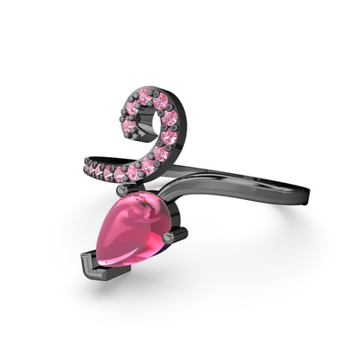 Pembe kuvars 925 ayar siyah rodyum kaplama gümüş yüzük