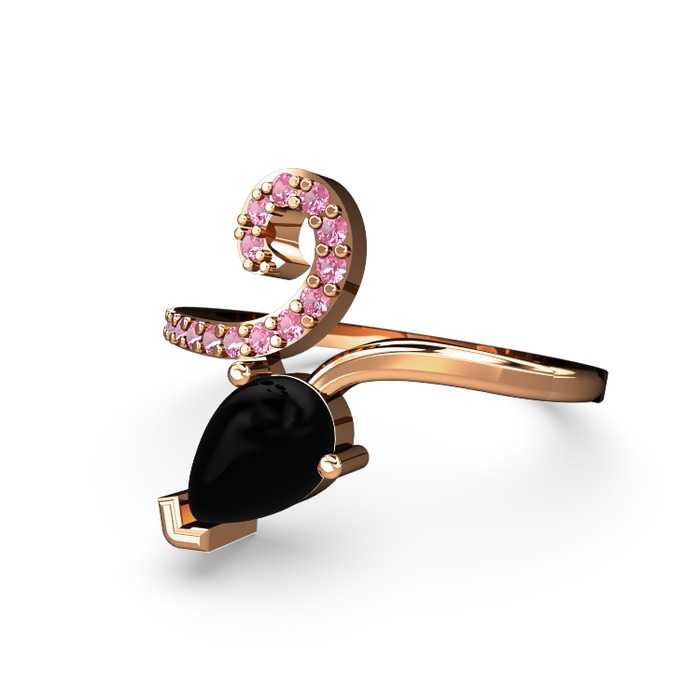Pembe kuvars ve siyah zirkon 18 ayar rose altın yüzük