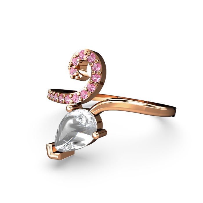 Pembe kuvars ve swarovski 925 ayar rose altın kaplama gümüş yüzük