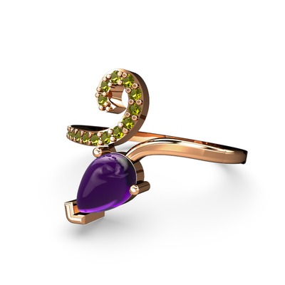 Peridot ve ametist 925 ayar rose altın kaplama gümüş yüzük