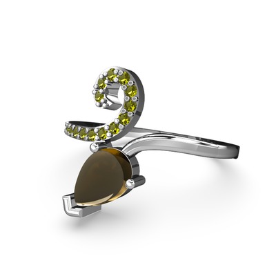 Peridot ve dumanlı kuvars 8 ayar beyaz altın yüzük