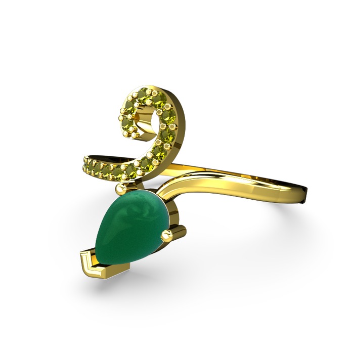 Peridot ve kök zümrüt 925 ayar altın kaplama gümüş yüzük