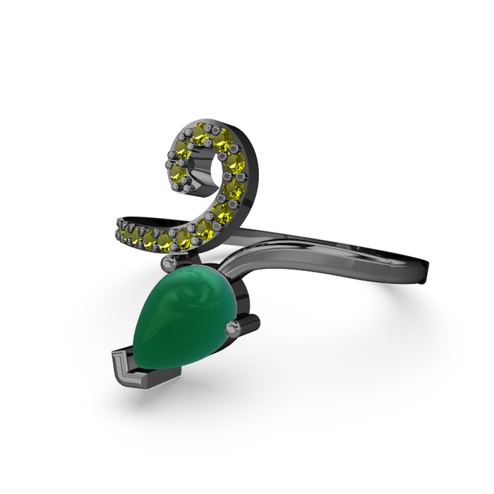 Peridot ve kök zümrüt 925 ayar siyah rodyum kaplama gümüş yüzük