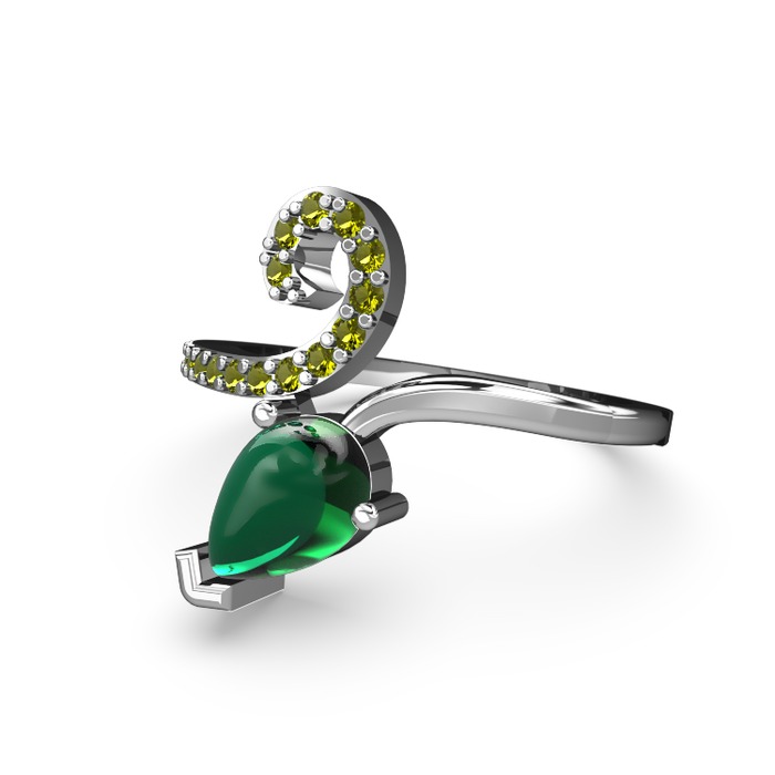 Peridot ve yeşil kuvars 18 ayar beyaz altın yüzük