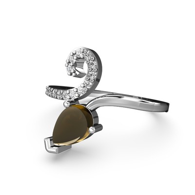 Pırlanta ve dumanlı kuvars 14 ayar beyaz altın yüzük (0.27 karat)