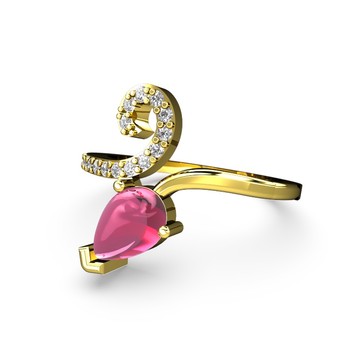 Pırlanta ve pembe kuvars 8 ayar altın yüzük (0.27 karat)