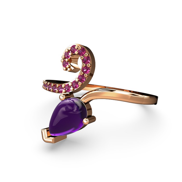 Rodolit garnet ve ametist 14 ayar rose altın yüzük